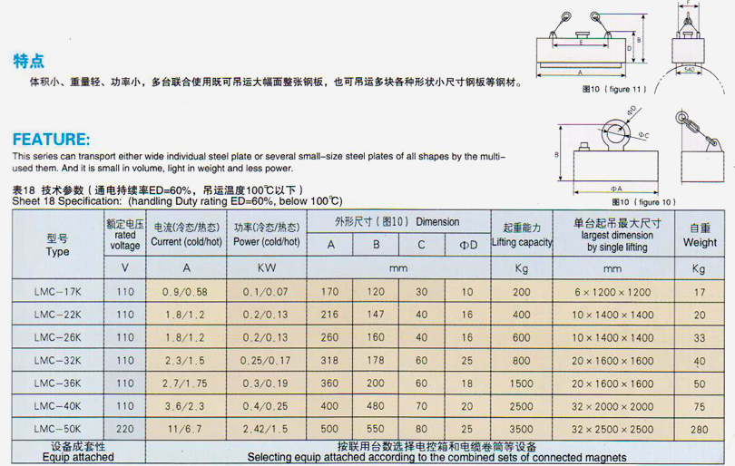 LMC-K系列吊運鋼板用小圓形起重電磁鐵